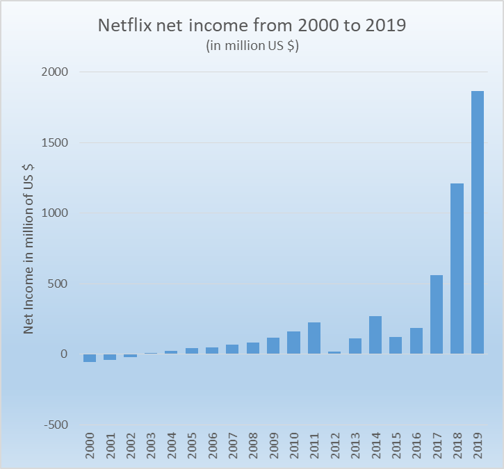 As mentioned earlier, Netflix has not always been what it is today. It started life as a mail order DVD service with all the attendant challenges and costs of mailing and receiving physical DVDs. Back in 2011, Reed Hastings, Netflix CEO, realized the future of mail order DVD was futile and made a startling decision to partition the company into a mail order DVD entity, Qwikster, and the streaming Netflix that we know of today. Mind you, this was nearly a decade after being in business, having positive net income and meaningful net income growth. At the time, he stated,