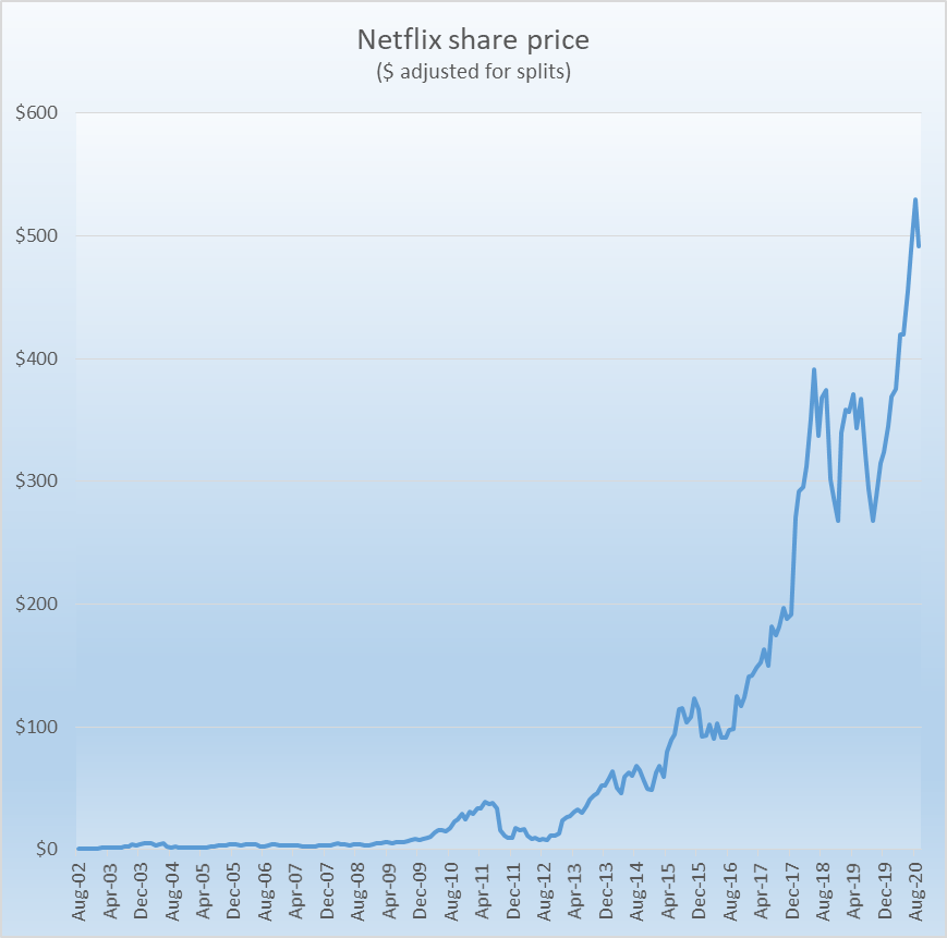 After an initial share price drop, Reed Hastings was ultimately vindicated for his pivot in strategy and transformation from 2013 onwards. And boy was he ever vindicated.